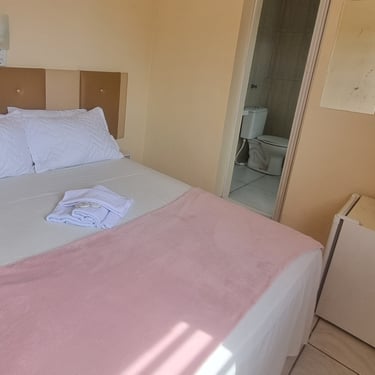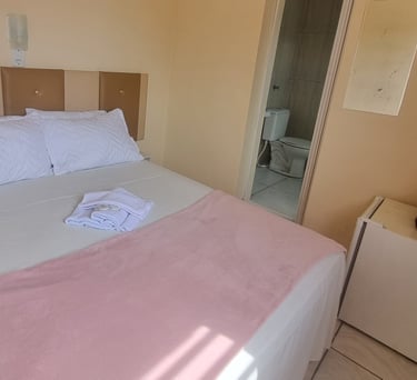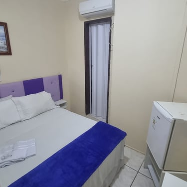 Suíte espaçosa com frigobar, TV a cabo e ar-condicionado.